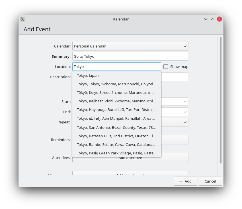 Volker Krause also kindly submitted a merge request adding support in Kalendar for Akonadi incidences that have their locations set as coordinates. This should enable compatibility with certain applications and plugins such as KMail’s Itinerary plugin.